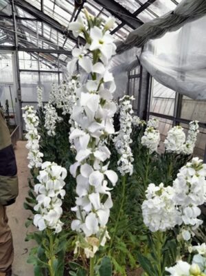 1月20日今日は実習でストックの収穫をしました。本来は八重のみ収穫するはずだったのですが、初めての八重鑑別だったので、一重のストックが想定以上に多く出てしまいました。一重のストックは普段は出荷しませんが、数が多かったので一重も一緒に収穫しました。八重は通常通り収穫し、一重は下の花が枯れていない物を収穫しました。