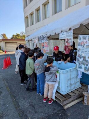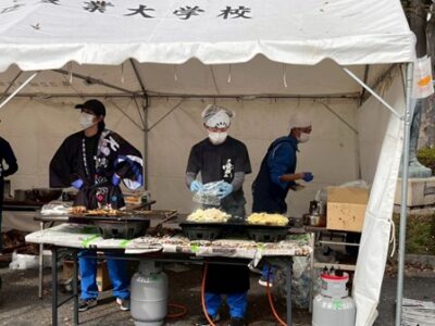作物専攻の模擬店では、焼きそば・たこ焼き・焼き芋を販売しました。1日目では、自分たちが栽培した小麦粉やサツマイモを使い、たこ焼きや焼き芋を販売しました。最初は焼き加減などがわからず苦戦しました。しかし、2日目は前日の経験を活かし火力を調節しながら作ることができました。また野菜専攻から買い上げたキャベツを使い、Mプロが調理した焼きそばは大好評でした。みんな一丸となって作業でき、たくさん販売することができました。物販では、白小豆・枝豆・サツマイモ・大根を販売しました。収穫・調製を1,2年生協力し合い、去年より多く販売できました。