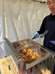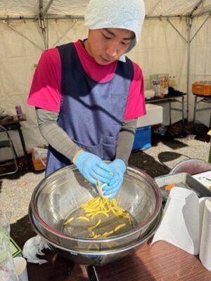 模擬店は唐揚げとフライドポテトをしましたが最初は油の温度が思っていたより上がらなくて時間がかかってしまいましたが、温度調整を工夫することで2日目は順調にできました。
