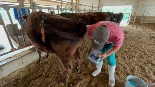 1月27日、牛の妊娠鑑定を行いました。妊娠鑑定は、種付け後30日目と60日目に、エコーを使って妊娠しているかどうかを確認します。60日目になると胎児は見えやすくなりますが、胎児の位置を見つけるのが難しく、私はとても苦労しました。今回の経験を通して、もっと経験を積み、種付けも妊娠鑑定も上達したいと感じました。