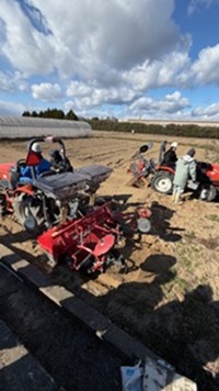 農業実技演習で、ロータリー耕と畝立ての練習を行いました。